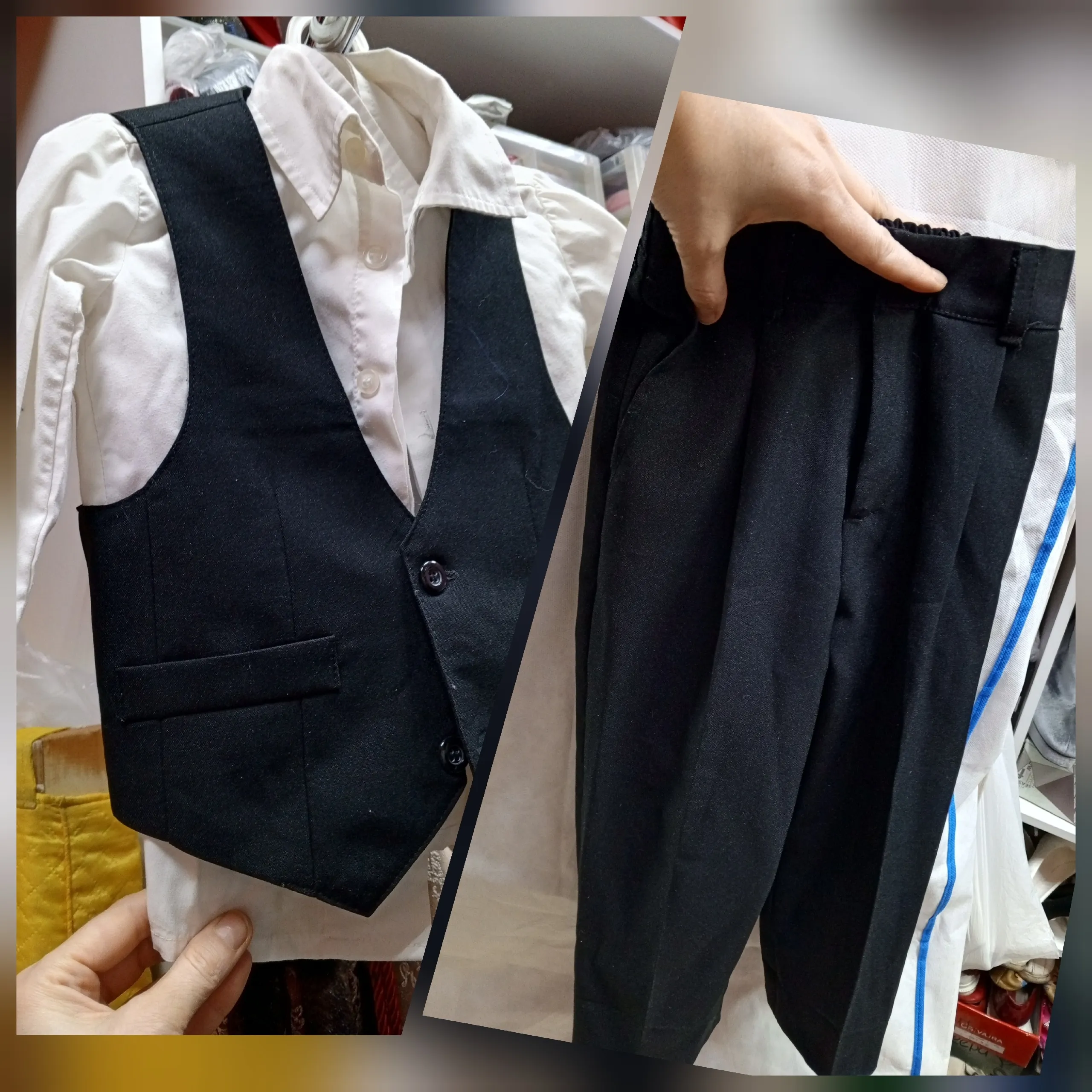 В комплект входят брюки, жилет и рубашка