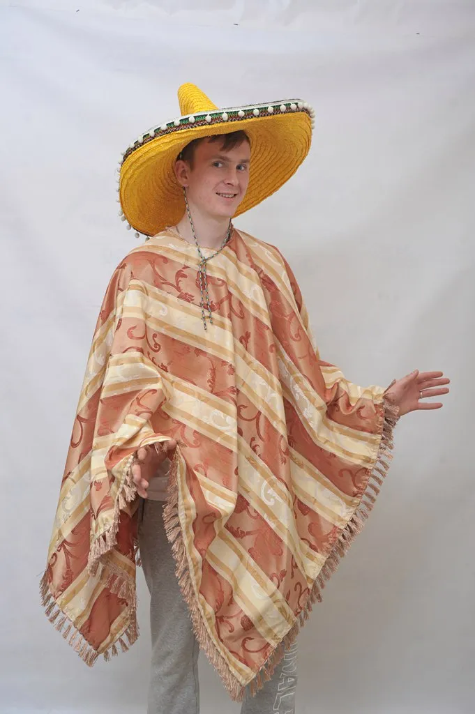 Описание: Объемное пончо с растительным принтом и бахромой. Образ завершает соломенное самбрерро.
