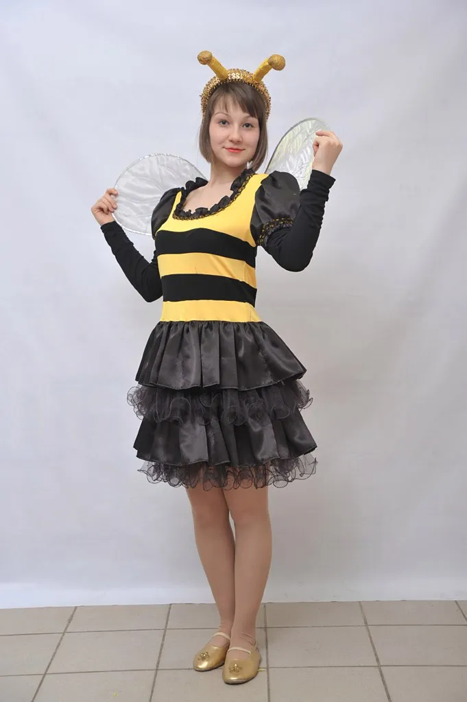 Описание: Желто-черное платье с к прозрачными крылышками на спине в сочетании с золотым ободком, имитирующим усики
