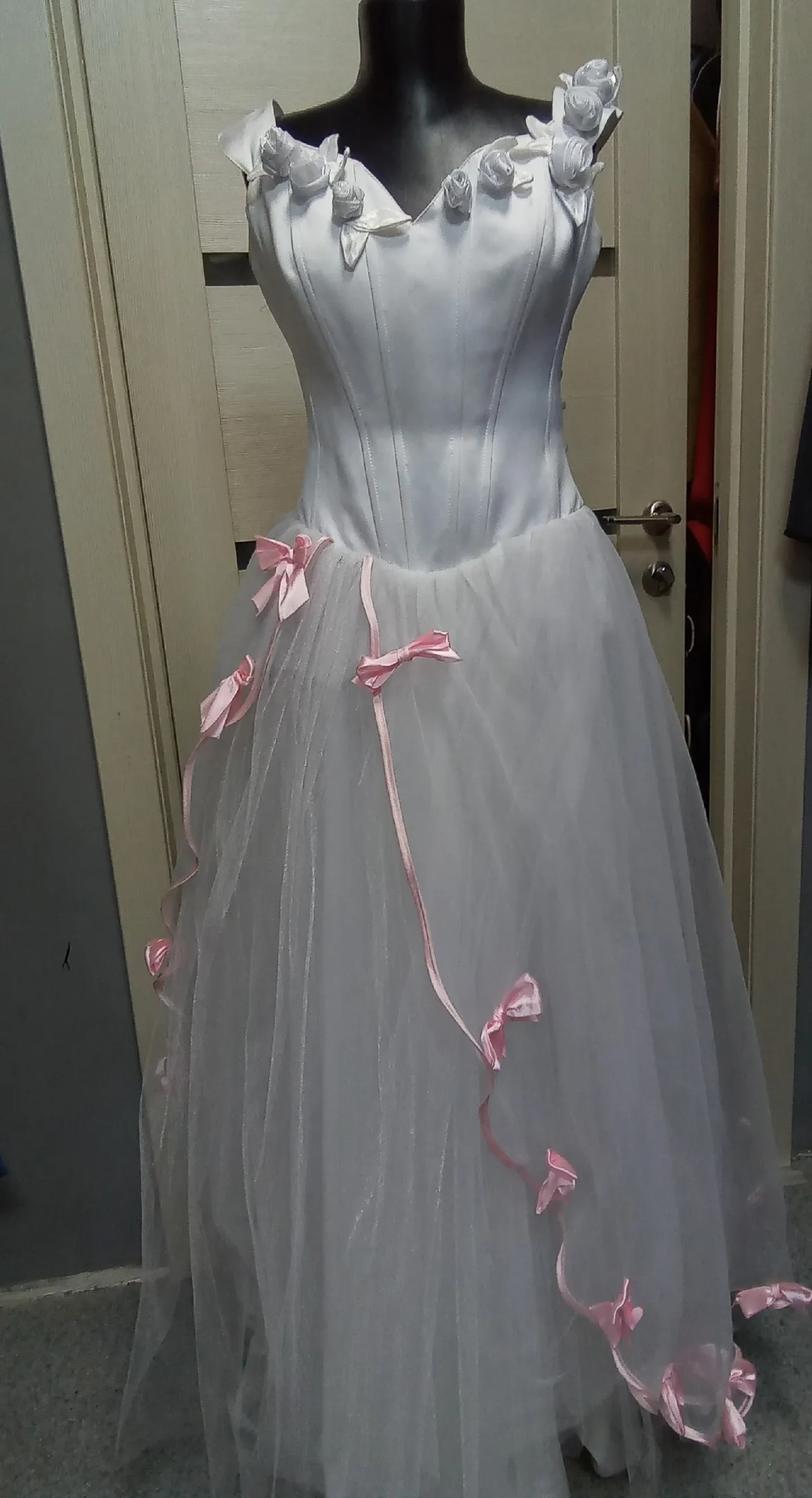 Платье белое бальное, пышное.