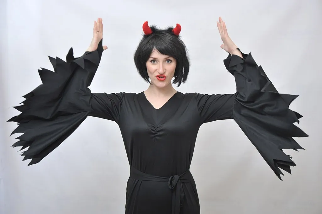Образ завершает парик или ободок с рожками. 200р