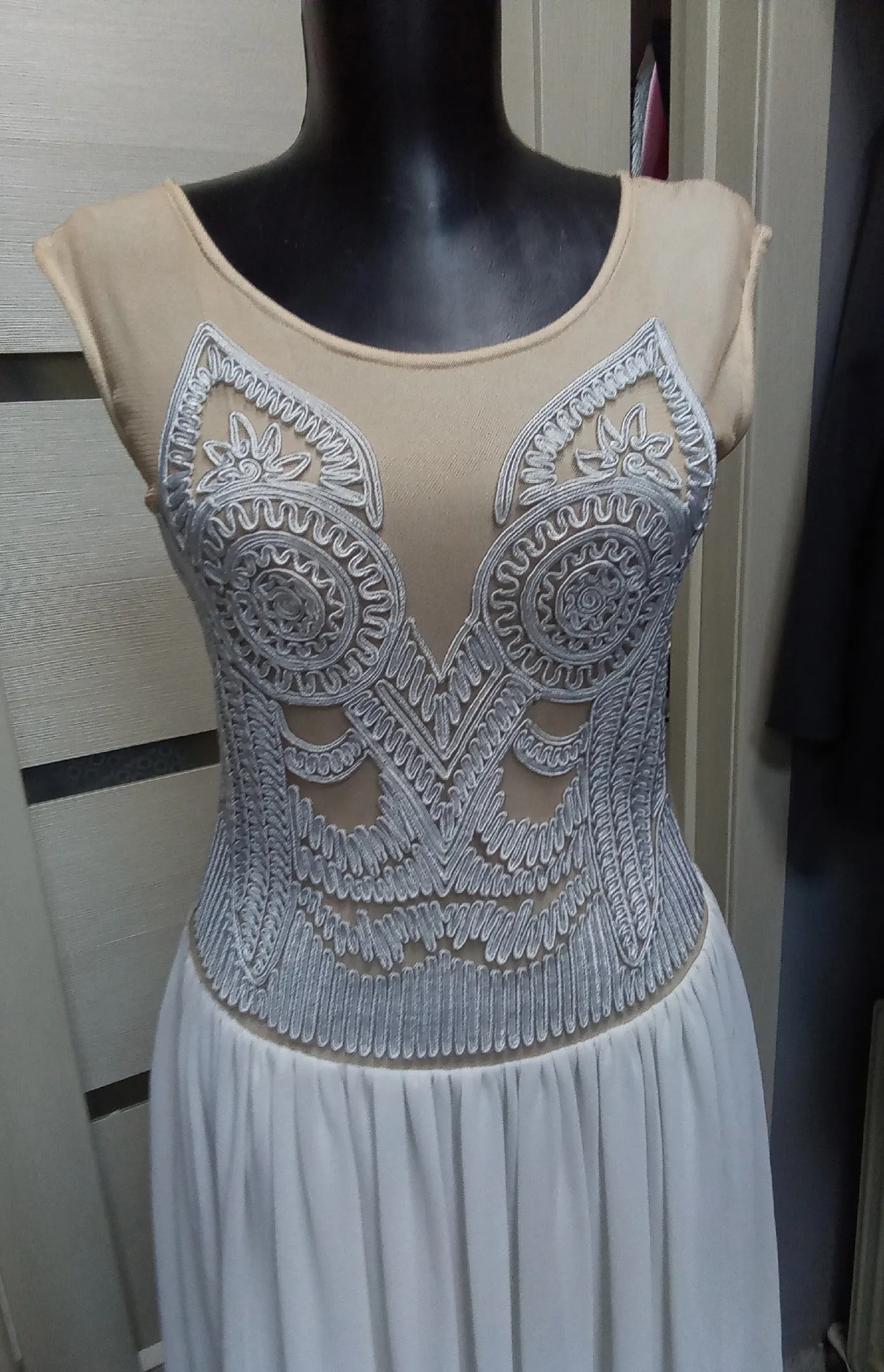 Платье вечернее длинное. Верх платья из трикотажа, хорошо тянется, приятный к телу