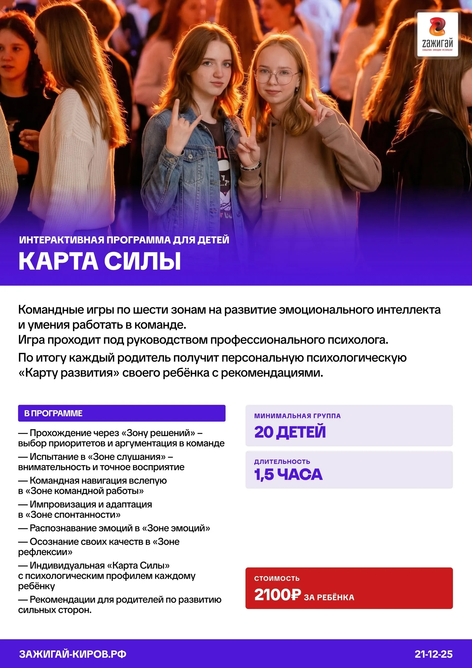 🎈 Организуйте настоящий праздник для вашего ребёнка! ««Карта силы» — мероприятие для школьников» — проверенная программа от «Зажигай» с яркими активностями и опытными ведущими.