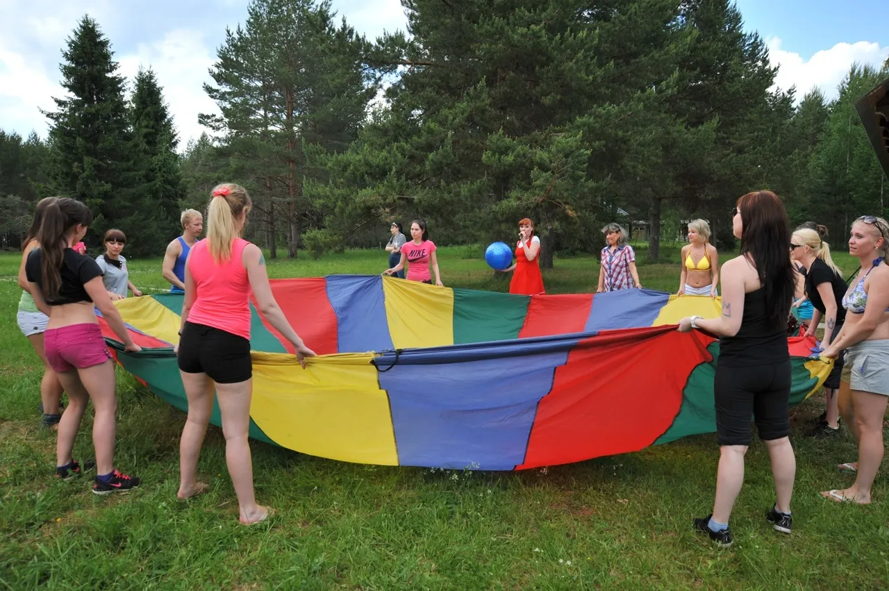 Описание: Динамичная игра с большим парашютом и мячом.