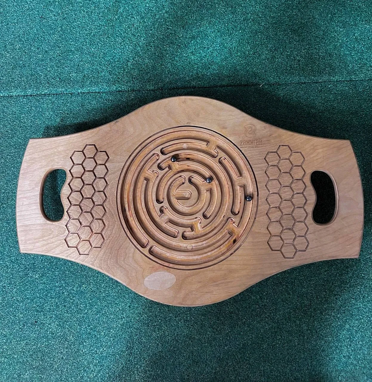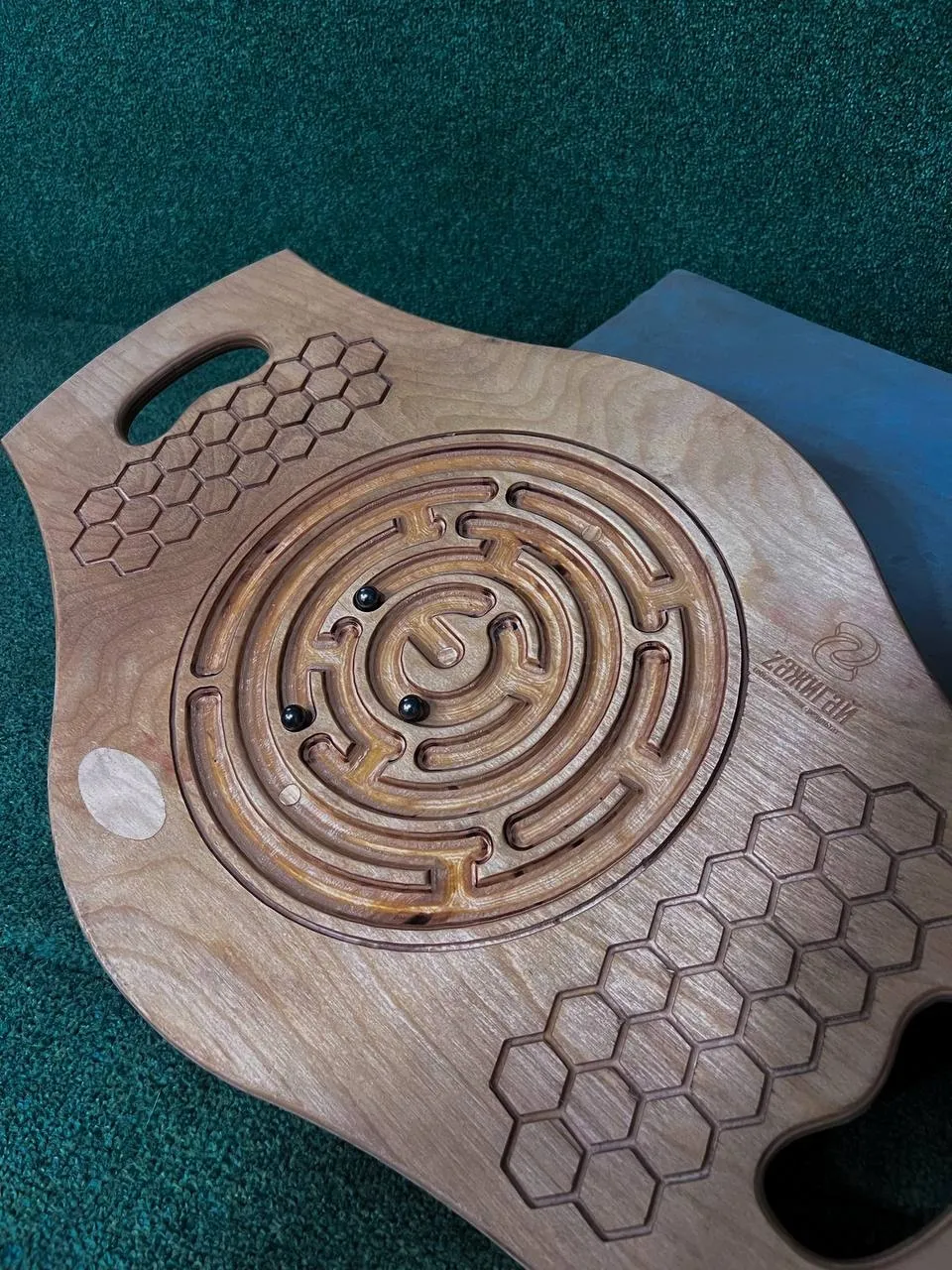 Это головоломка, в которой игроки должны держаться руками за края лабиринта и вместе провести шарик через лабиринт. Лабиринт представляет собой множество дорожек, соединенных между собой, и игрок должен пройти по ним, чтобы достичь цели.
