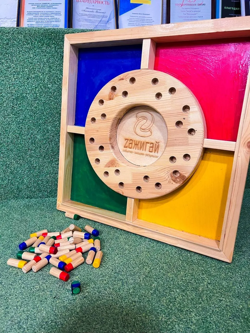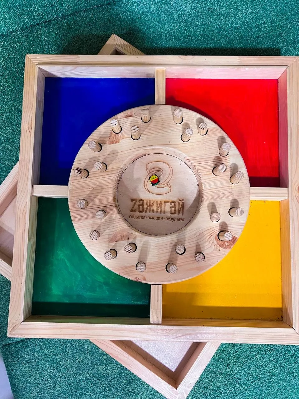 Несколько игроков по очереди достают деревянные фигурки (у каждой фигурки есть свой цвет), и заполняют поле в выбранным цветом. Выигрывает тот игрок, у которого на поле собрано больше всего фигурок с соответствующим цветом.