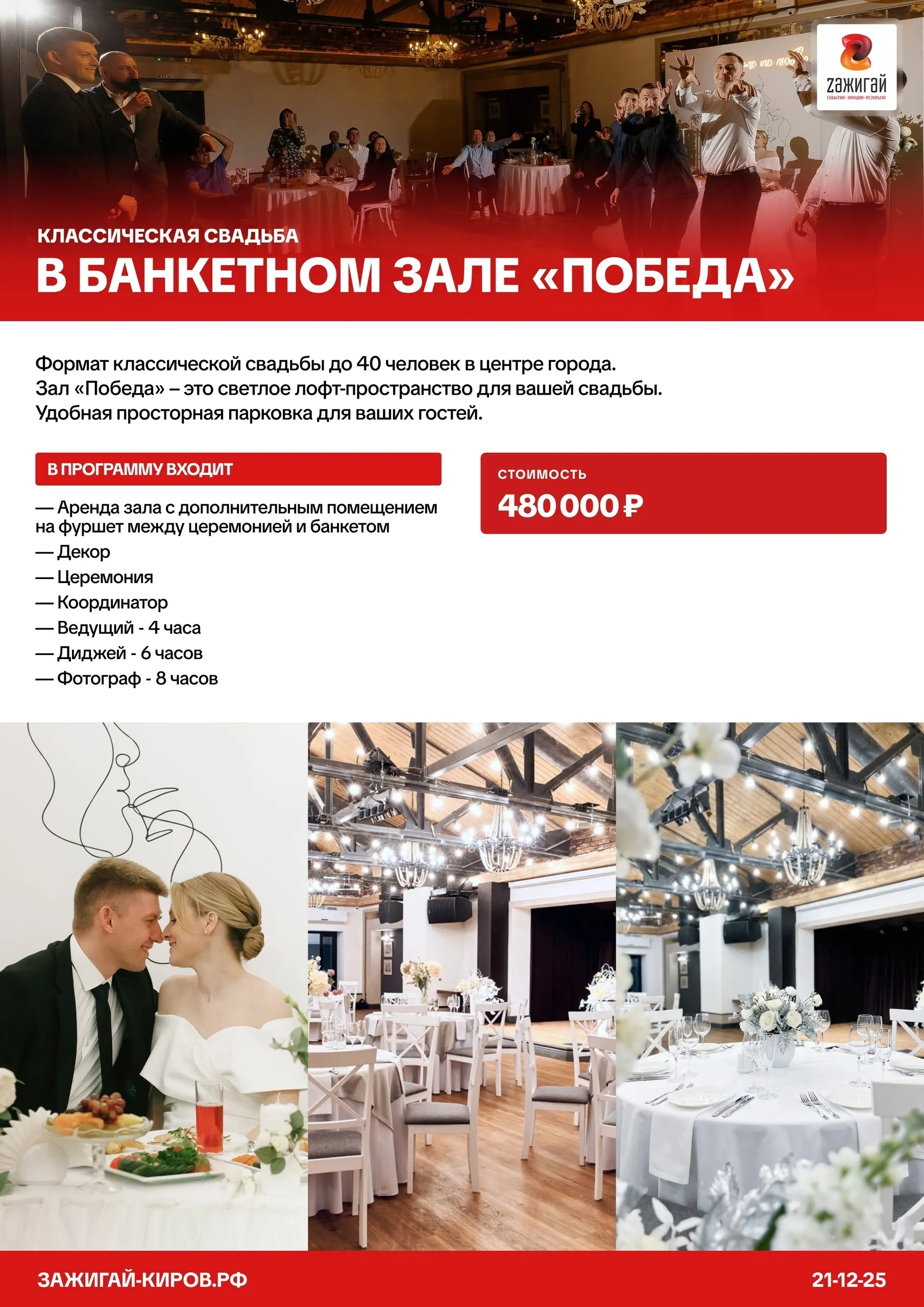 Агентство «Зажигай» — организация свадеб в Кирове под ключ с 2008 года. Оставьте заявку — обсудим детали и создадим свадьбу вашей мечты!